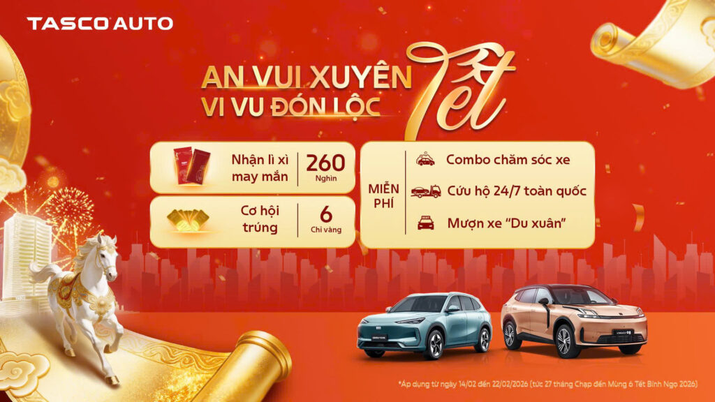 Hà Nội, ngày 12/02/2026 – Nhân dịp Tết Nguyên đán 2026, Tasco Auto chính thức triển khai chương trình tri ân khách hàng sở hữu các xe ô tô thương